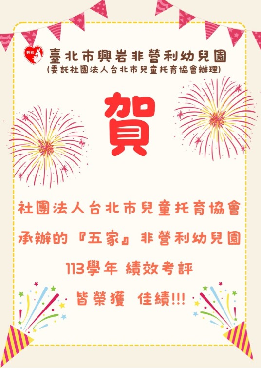 慶賀❣️❣️❣️ #社團法人台北市兒童托育協會 五家非營利幼兒園 樟新非營利幼兒園粉絲專頁 臺北市景新非營利幼兒園 臺北市實踐非營利幼兒園 臺北市安東非營利幼兒園 #臺北市興岩非營利幼兒園 全部 所有 通通❗ 皆獲得佳績 得到90分以上的好成績